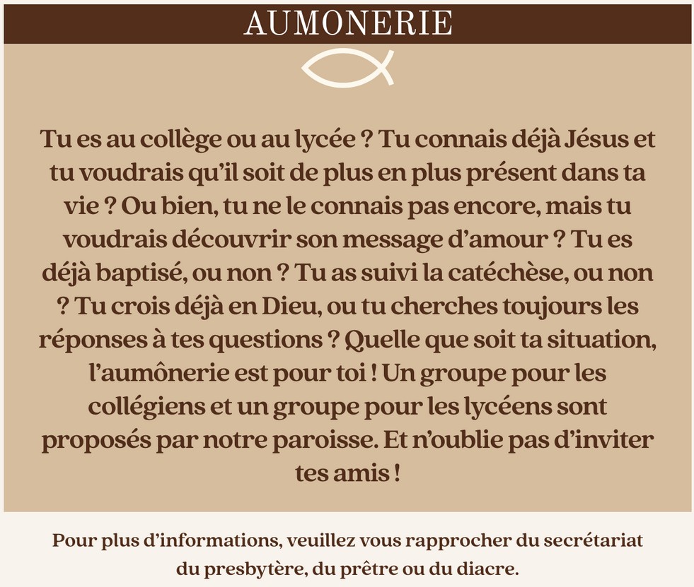| Mardi | 10h | EHPAD ND des Anges | Messe |